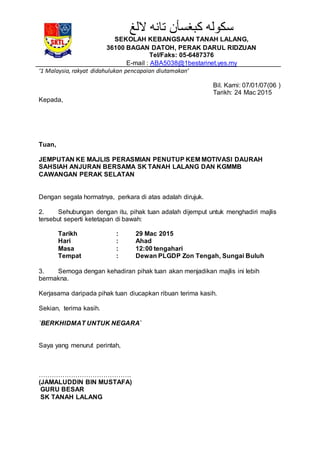 Surat Jemputan Ibu Bapa Program Ceramah Motivasi Pdf